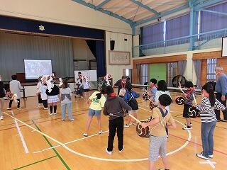 「水木ささら保存会」の方々をゲストティーチャーにお招きして、「水木ささら」の体験学習をしました。