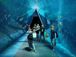 アクアマリンふくしまでは、美しい魚や 珍しい魚をたくさん見ながら、水族館で働く人たちの様子や生き物の展示方法の工夫を学ぶことができました。