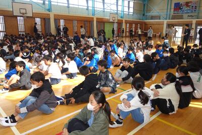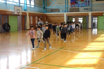 (不審者の身柄拘束後、全学年体育館へ避難完了・・・👍)