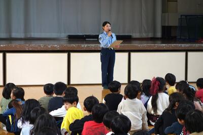 〇 昨日の3校時、不審者侵入を想定した避難訓練を行いました。日立市防犯サポーターの方にご協力をいただきました。