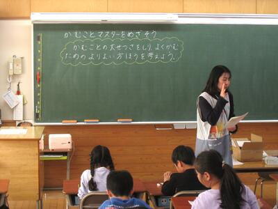 今日の3校時、保健指導の一貫で保健室の先生が授業研究を行いました。「かむことマスターをめざそう!」と題した授業です・・・😁 授業では、ワークシートをもとに教材を視聴し、実際にガムを噛む活動を通して、よく噛んで食べることの大切さや正しい噛み方について理解しました🦷