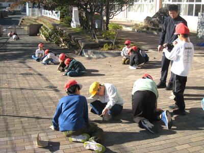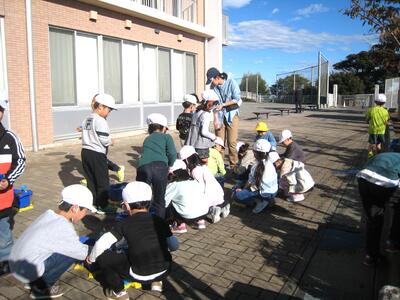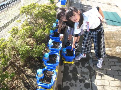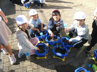 (1年生は生活科:春に向けて、アサガオの観察で使った鉢にチューリップの球根を植えました・・・🌷)