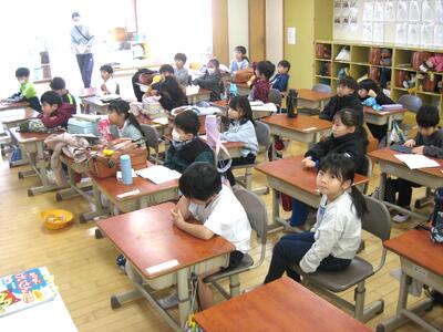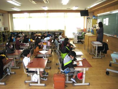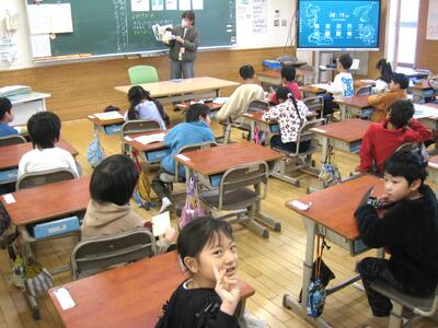 金曜日朝の定番となっている「読み聞かせ」(いろはの会)・・・📖 年内最後となった今日は、1・3年生です。