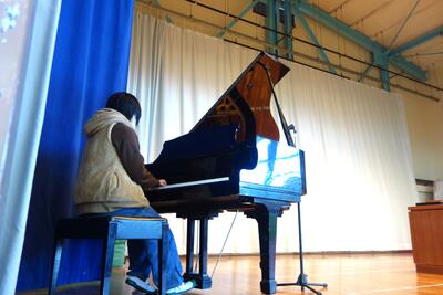 (校歌を元気歌い、体育館中に声を響かせました。)