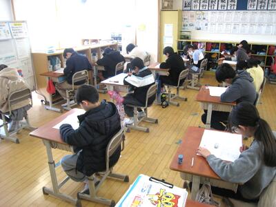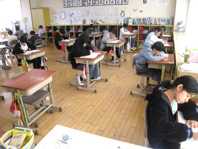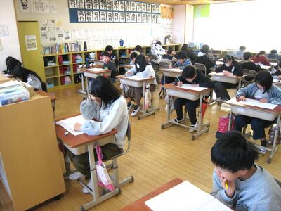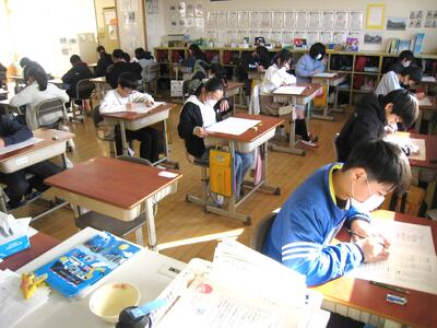 「県学力診断のためのテスト」を実施・・・📝 投稿: 承認者 (01/15) 本日の2・3校時に、4~6年生が「学力診断のためのテスト」」〔国語・理科〕を実施しました。子供たちは、普段行っている単元テストや国語力・算数力だめしとは違い、いつもより緊張した面持ちで自分の氏名を記入し、一問一問じっくり考えて解答する姿が印象的でした。😅 ※ 明日の様子を追加掲載します。 《4年生》 《5年生》 《6年生》 明日16日(金)の算数・社会も、引き続き頑張っていきましょう・・・👍 Tweet -