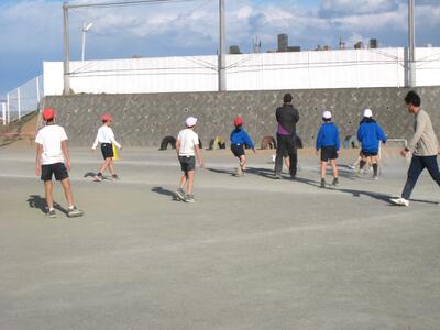 《屋外スポーツクラブ》 今日の活動は、サッカー。先生方・ALTも混じってゴールをねらいました・・・⚽