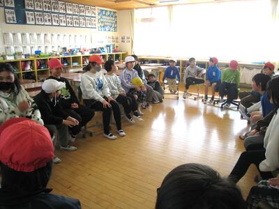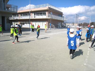 今日の日中は、春の暖かさを感じられる陽気でした。そんな今日の昼休みは、毎月恒例となっている縦割り班活動です。これまで同様、異学年のメンバーで構成されているグループごとに、楽しく交流し活動する様子が見られました。