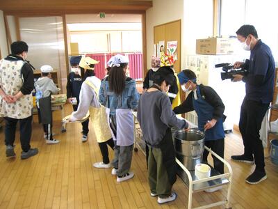 『給食大好き・・・‼️』😋 投稿: 承認者 (03/18) 昨日、ケーブルテレビ(JWAY)のスタッフの方がお見えになり、「給食大好き」を題した番組を放送するため、3-1の給食の様子を撮影しました・・・🎥 放送は、4月の予定です・・・💁♂️ 期日等については後日お知らせいたします。 Tweet -