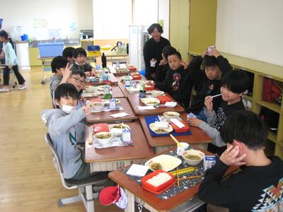 今日は、本年度の給食最終日となります。どの学年も、友達と仲良く楽しく会食する様子は、とても心が温かくなります。最終日とあって完食も続出・・・、今日もおいしくいただきました😋