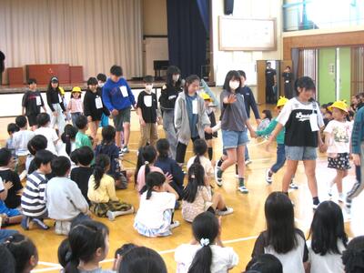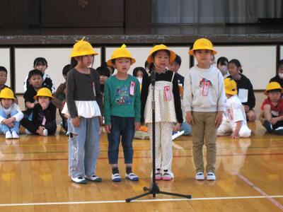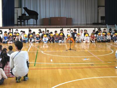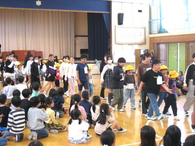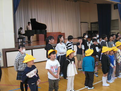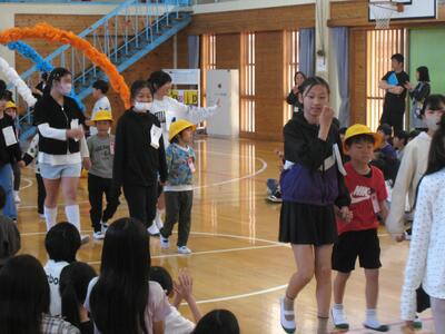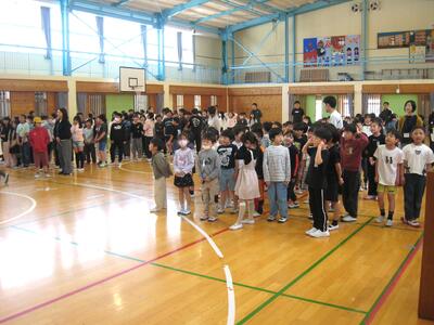 今日の3校時、「1年生を迎える会」を行いました。6年生の皆さんが企画運営にあたり、全校児童が参加し、入場~歓迎の言葉~1年生のあいさつ~レクリエーション(じゃんけん列車・〇✕クイズ)~校歌等と、お互いに交流し楽しいひと時を過ごしました・・・🎊