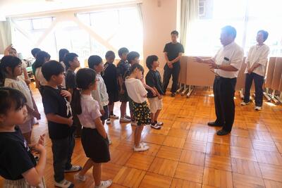 夏休みに、市内の小・中学校の代表児童生徒が一堂に会したオンラインによる「児童会・生会交流会」での各学校の様子を聞き、水木小でもできることはないかと考え、校長室の来訪に至りました。主体的な児童会活動を推進するためには、このような活動も大切だと考えます。ぜひ、本校にあったマスコットキャラクターを作り、有効に活用していってほしいと思います。