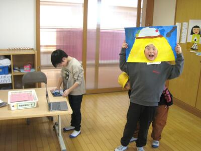 でき上がったパネルに顔を当てはめ、友達と互いに写真を撮り合いながら楽しく活動する表情がとても生き生きしているのが印象的でした。