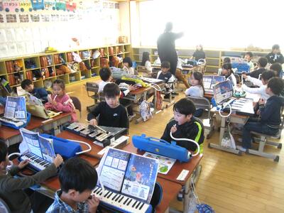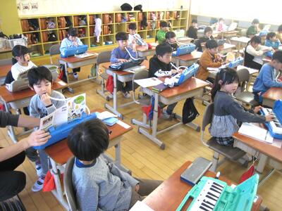 鍵盤ハーモニカや鉄琴を用いて、リズムにのって楽しく演奏してくれました。すばらしい合奏でした・・・😜 1年生の皆さん、どうもありがとう‼️