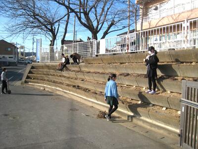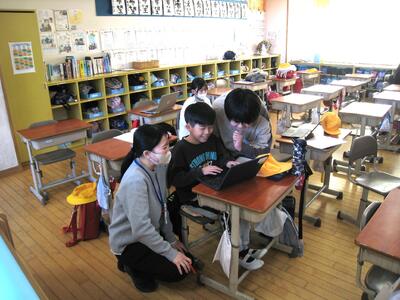 今日の日中は、春の暖かさを感じられる陽気でした。そんな今日の昼休みは、毎月恒例となっている縦割り班活動です。これまで同様、異学年のメンバーで構成されているグループごとに、楽しく交流し活動する様子が見られました。