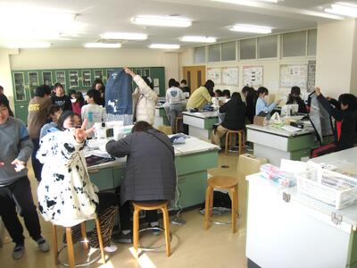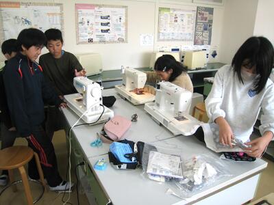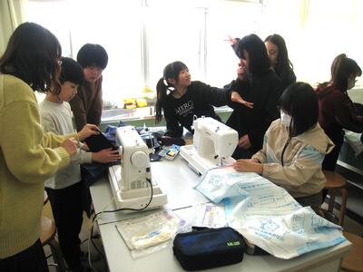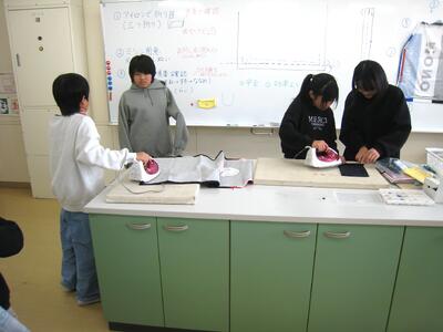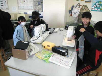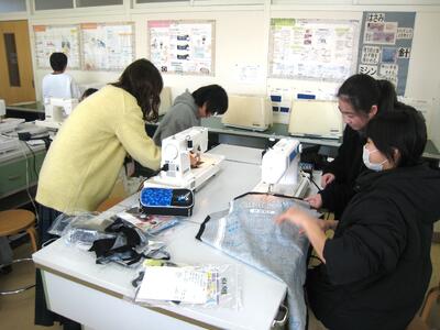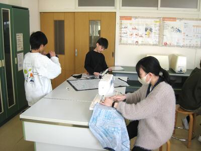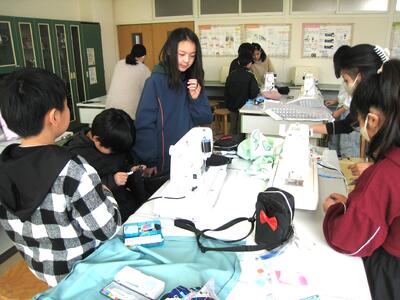 5年生の家庭科、生活を豊かにするための布を用いた製作という単元で「エプロンの製作」に取り組んでいます。手縫いやミシン縫いによる目的に応じた縫い方、用具の安全な取扱いについて理解し、適切にできるようにすることがねらいです。